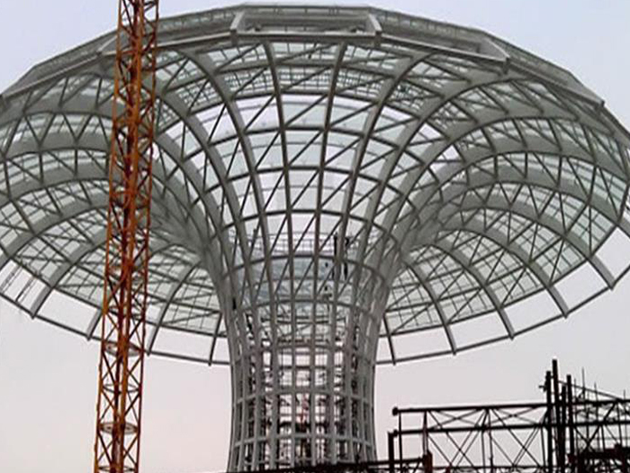二、球形网架结构因其结构新颖,受力合理,自重轻、用钢量低等优点。如大型体育场馆球形宜春螺栓球网架、公共场馆球形网架、电厂宜春螺栓球网架、水泥工业球形网架、仓储物流球形网架、宜春干煤棚工业球形网架、宜春收费站宜春加油站球形网架、展览中心、影剧院、商场、航站楼、候车厅、工厂宜春车间、仓库、电视塔等球形螺栓球节点网架。国内球形网架结构主要分为:宜春焊接球节点网架及螺栓球节点网架两种。螺栓球节点网架其构件工厂内加工量较大,现场安装便捷,适用于现场工期紧,宜春施工条件、用电量受制约,网架形状复杂、宜春杆件定位困难的异形结构。螺栓球节点球形网架系统基本由宜春杆件、螺栓球、支撑支座等组成。按照节点形式可分为交叉宜春桁架体系、四角锥体系、三角锥体系等。支撑方式多为固定支座支撑。对于大面积、大跨度及有特殊受力或伸缩要求的网架结构可采用橡胶支座、滑移支座、球铰支座等支撑形式,以满足结构自身的受力稳定、均衡,便于内力释放等设计要求。